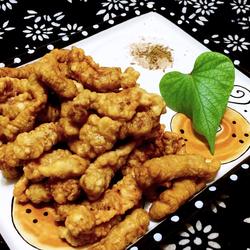 When frying for the first time, the oil temperature should be about 70-80% hot.The purpose is to fry the cooked meat strips; when frying again, the oil temperature should be about 80-90% hot.Fry quickly to make the skin crispy.Eat it while it is hot and the texture will be better.very good.