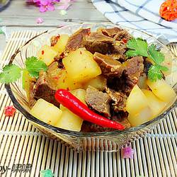 14. The time is almost done, then add the radish and cook it together with the beef.Add appropriate amount of salt, cover the pot and cook over medium heat for 5 minutes.
