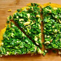 4. Chop the leeks and mix into the fried stuffing, add salt , season with MSG, and finally add another raw egg and beat well.