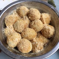 11.Put the small glutinous rice balls into the freshly mixed soybean flour