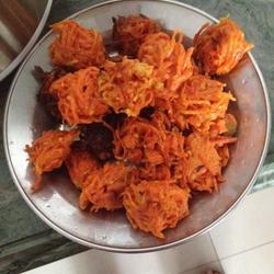 6. Heat the oil in a hot pan, then squeeze the dough into balls, put them in the pan and fry until golden brown