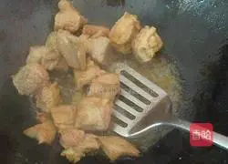 3.3.Melt the rock sugar in the base oil, pour in the beef and stir-fry Fry for a while to dry out the beef slightly.