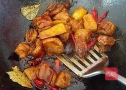 4.4.Add various spices, light soy sauce, Dark soy sauce, thirteen spices, stir-fry for a minute or two.