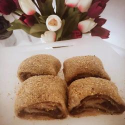 6. Roll out the living dough and flatten it, spread it with bean paste and roll it up