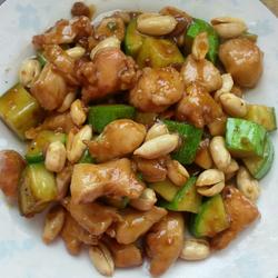 10.Add in the diced chicken, stir-fry the diced melon.Remove from the pan and stir-fry the peanuts.Stir evenly and add water and starch to thicken it.