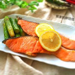 5. Flip the salmon until it is golden brown on one side and reduce the heat to low.During this period, keep turning the asparagus and pay attention to the heat until all the ingredients are cooked