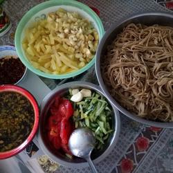 You can add beans, spinach, and bean sprouts according to your personal preference, cook them separately and mix them into the noodles