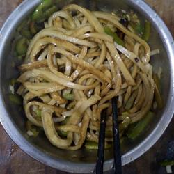 8. Heat the oil and stir-fry the peppercorns When the aroma is released, put it into the cut dough, add soy sauce, vinegar, MSG, salt, sesame oil, and stir!