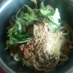 9. Stir in cucumber shreds, dried sauerkraut, and sauce