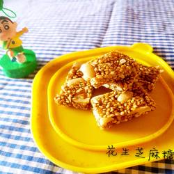 6.Put the sesame seeds and peanuts into the sugar and mix evenly.You must move quickly, otherwise it will dry out (I didn’t have time to take a photo of this step).Place the mixture on the board and use a rolling pin to push it away