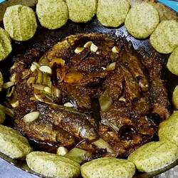5.After half an hour, the pancakes are cooked and the fish is cooked, take them out of the pan