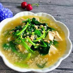 8.Put in the blanched spinach and bring to a boil, then add salt and chicken essence to taste