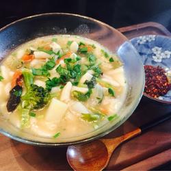 The more the noodles are cooked, the more chewy they will be.But don’t cook it for too long.Otherwise there will be no soup.Braised mochi will have soup.It’s delicious when there are vegetables on the noodles.If you like eggs, you can pour in two eggs at the end and stir well