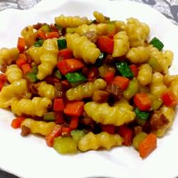 1. Roll the dough into a slightly thick sheet and cut into one centimeter Small square cubes