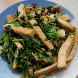 3.Turn down the heat, pour out the oil, add the normal amount of oil, add the tofu strips (fish), and fry slowly over medium heat