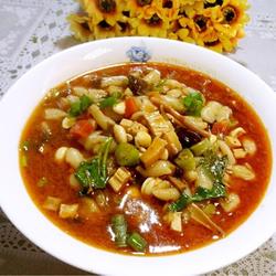 11.Add MSG, sprinkle with chopped green onion and coriander and serve.