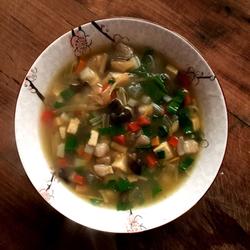 13.Add water to cover the vegetables, add salt, bring to a boil over high heat, then simmer over low heat for 10 minutes, add chicken essence