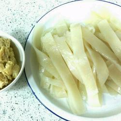 19. Cut the dough into strips and cut the gluten into small pieces.Prepare for cold salad