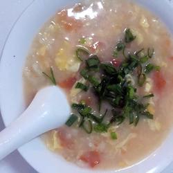 1. Cut the tomatoes into cubes, cut the green onion into rings, stir-fry the tomatoes a little, add water to make the soup.Beat the eggs into egg liquid, mix well and set aside.