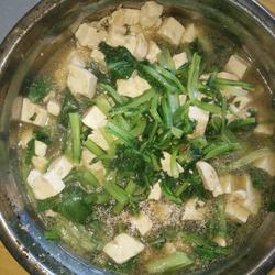 5. Add water to stir-fry vegetables and put tofu in the pot.Just a little salt and it will take a few seconds to go abroad