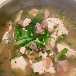 3. Pour in the boiling water that has been boiled in advance.Put in the tofu, it is best to break it with your hands, it is more delicious than cutting it with a knife! Finally add the vegetable leaves and simmer.
