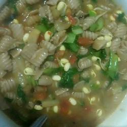 8.Put oil in the pot and fry the potatoes until cooked.Add mushrooms.Add water to onions, garlic, peppercorns, tomatoes.Boil the bean sprouts in water.Cook for 3 minutes, add sesame seeds, cook for 3 minutes, add rapeseed and cook until it comes out of the pot.