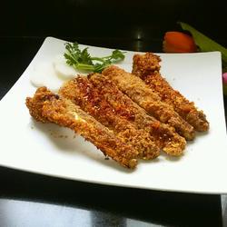 5. Mix the glutinous rice flour and bread crumbs evenly, and then evenly wrap it in the lamb chops superior.