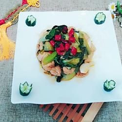 4. Add the rapeseed and stir-fry over high heat so that no soup will be added