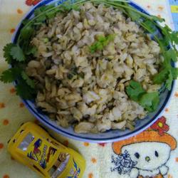 4. After steaming, pour it out and put it into a large basin to shake, and put it in the wok After adding a little rapeseed oil, add the onion, garlic, and chili and stir-fry until fragrant.Add the required amount of wheat rice, stir-fry until required, and scoop out.