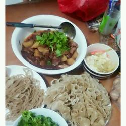 9. Fry the meat, add water and put the potatoes.Or make your favorite dipping sauce.