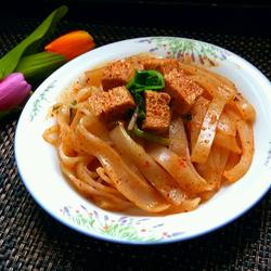 21.Put the dough and vegetables into a large bowl, add vinegar, light soy sauce, salt and sugar A little, a little chicken essence, then add diluted sesame paste, then add chili oil and mix well.