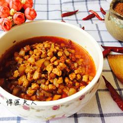 13. Stir well.Continue cooking until the water in the meat is cooked out, then add an appropriate amount of salt and chicken essence.Use a spatula to stir fry during this period to prevent sticking to the pan.
