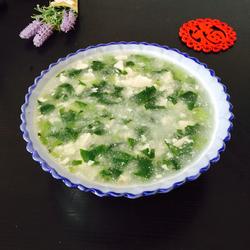 1.The ingredients are tofu, a piece of green vegetables A handful