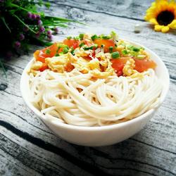 10. Put the cooked noodles into a bowl, add the fried tomatoes and eggs, mix well and mix well.Eat