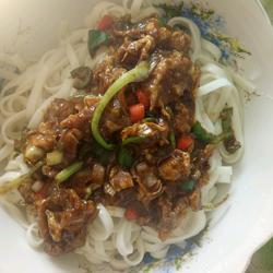 6. Put the noodles in a bowl (drain some water) and put the fried braised eggs and peppers into the braised noodles and serve