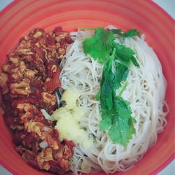 5.Finally, the plating can be done.Since I don’t have chopped green onions at home, I used celery leaves instead.If you like to eat garlic, you can use a blender to mince the garlic and add an appropriate amount for stirring.You can also add some sesame oil.Finally mix and it is ready to eat.