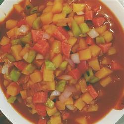 2. Dice the cucumbers, potatoes, ham, sausage and onions and set aside