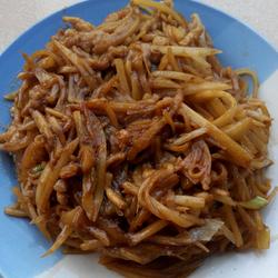 2.Shred the meat and add Starch, a little water, a little salt, a little peanut oil, mix well