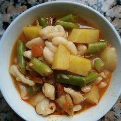 The vegetables are used to mix noodles, so there must be soup in them, that is, water must be added when stewing; you can add more tomatoes according to personal taste; Onions