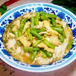 17. Put the braised beans and eggs in Picture 11 on top of the noodles in Picture 16