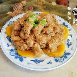 7.Put the marinated meat on top of the pumpkin! Put it in the steamer! Bring to a boil over high heat and simmer over medium-low heat for about thirty minutes! Halfway through, take it out and taste it to see if the flour is soft.If it is not soft and is very dry, you can sprinkle some water on the meat.Steam training takes about fifteen minutes!