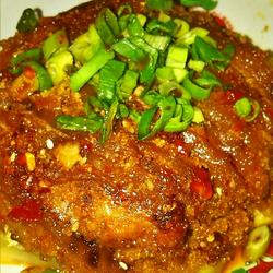 7. After steaming, cover the bowl with a plate and quickly turn it over and sprinkle with chopped green onion.