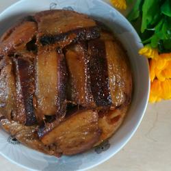 8.Put the glutinous rice into the bowl with the meat and steam it in the electric pressure cooker for one hour