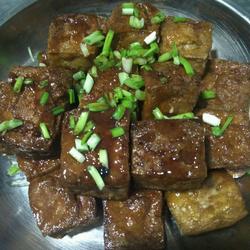 13. When there is not much sauce left, carefully pick out the tofu boxes one by one , code it, pour the remaining sauce onto the tofu box, and sprinkle with chopped chives.