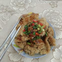 2.Sprinkle steamed pork rice noodles, thirteen spices, salt (a little), chicken essence, soy sauce, appropriate amount of cooking wine, and marinate on the meat About twenty minutes