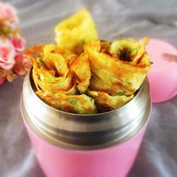 4.Put the zucchini and green onion into a basin, beat the eggs