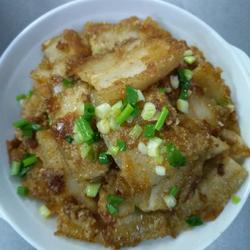 3.Place the fried steamed pork with chopped green onions, mix well and serve on a plate.