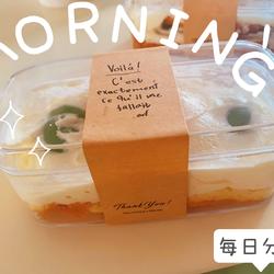 8.Cut the cake base according to the size of the box, put it in the box, spread a layer of whipped cream, add fruit, repeat once