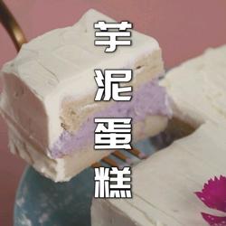 12.Take a piece of cake embryo, use a spatula to evenly spread a layer of prepared purple potato taro Mud Sauce