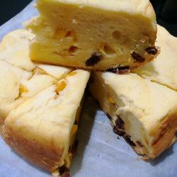 4. Brush the rice cooker with oil and preheat for 2 minutes.Pour the mixed paste into the rice cooker and spread it in layers.Add raisins, orange pulp and mango pulp, and finally shake the pot three times to make air bubbles come out